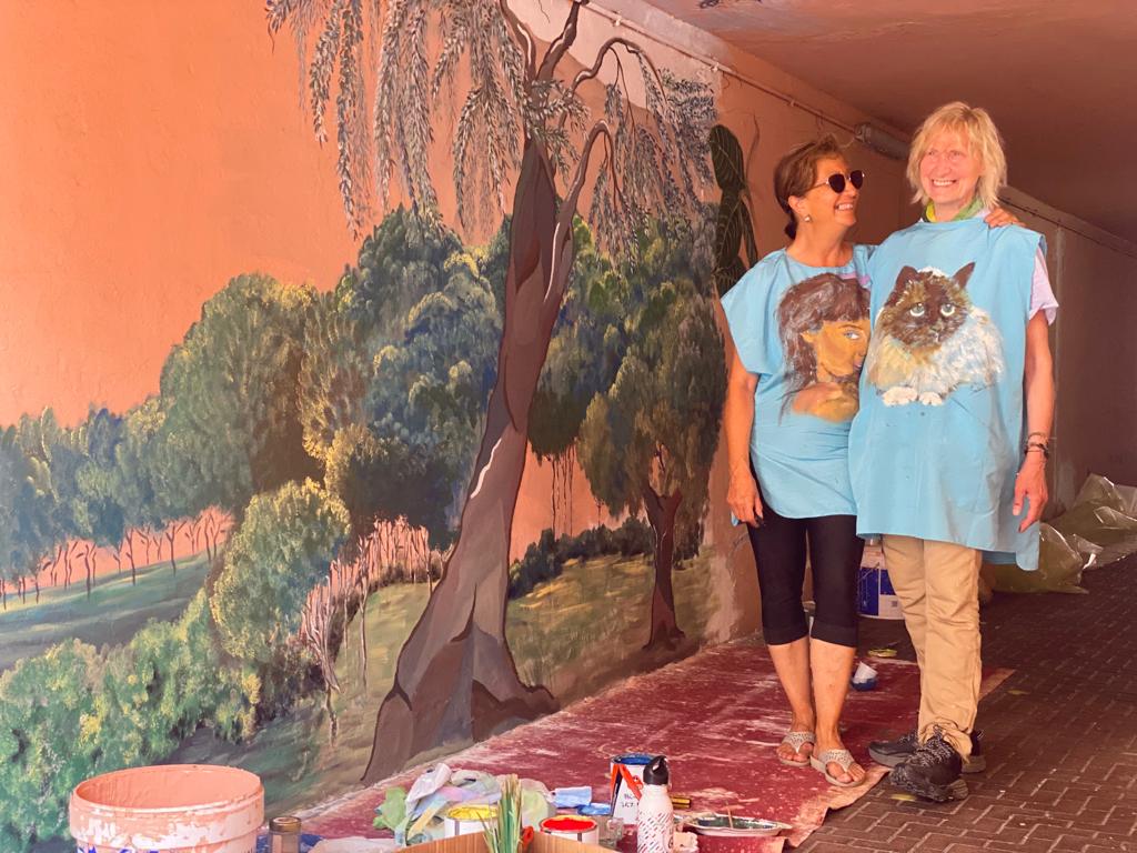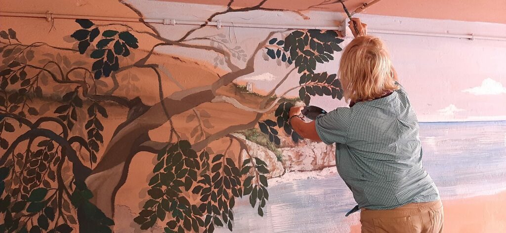 “Abbiamo cercare di realizzare, con questo progetto trompe l’oeil – dicono le artiste – “un legame tra la nostra produzione grafico-artistica ed il visitatore che osserva questa opera d’arte. Il fine è quello di farlo diventare protagonista, cogliendo appieno le caratteristiche del luogo esaltandone la bellezza. Il murale, dal forte impatto coloristico e grafico, permette a chi lo incontra non solo il godimento estetico immediato, ma anche la possibilità di fermare il ricordo tramite una foto o un autoscatto”.