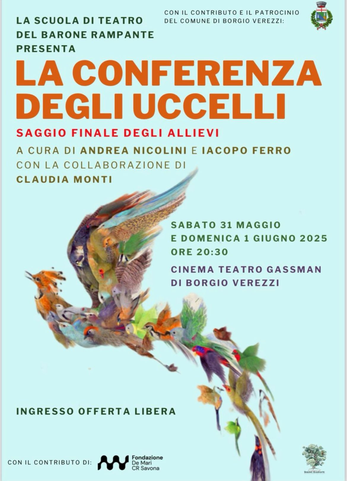 La conferenza degli uccelli” è il saggio di fine anno, ma è anche molto di più: un progetto corale, inclusivo e potente, che intreccia recitazione, canto e teatro-danza sotto la guida dei docenti Andrea Nicolini, Iacopo Ferro e Claudia Monti.